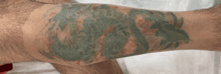 I am absolutely enchanted with the work that Lelo did on my leg tattoo. After my original design had already been covered twice by other people, I now have an absolutely coherent work of art perfectly etched into my skin, which corresponds exactly to my ideas. I am more than happy!